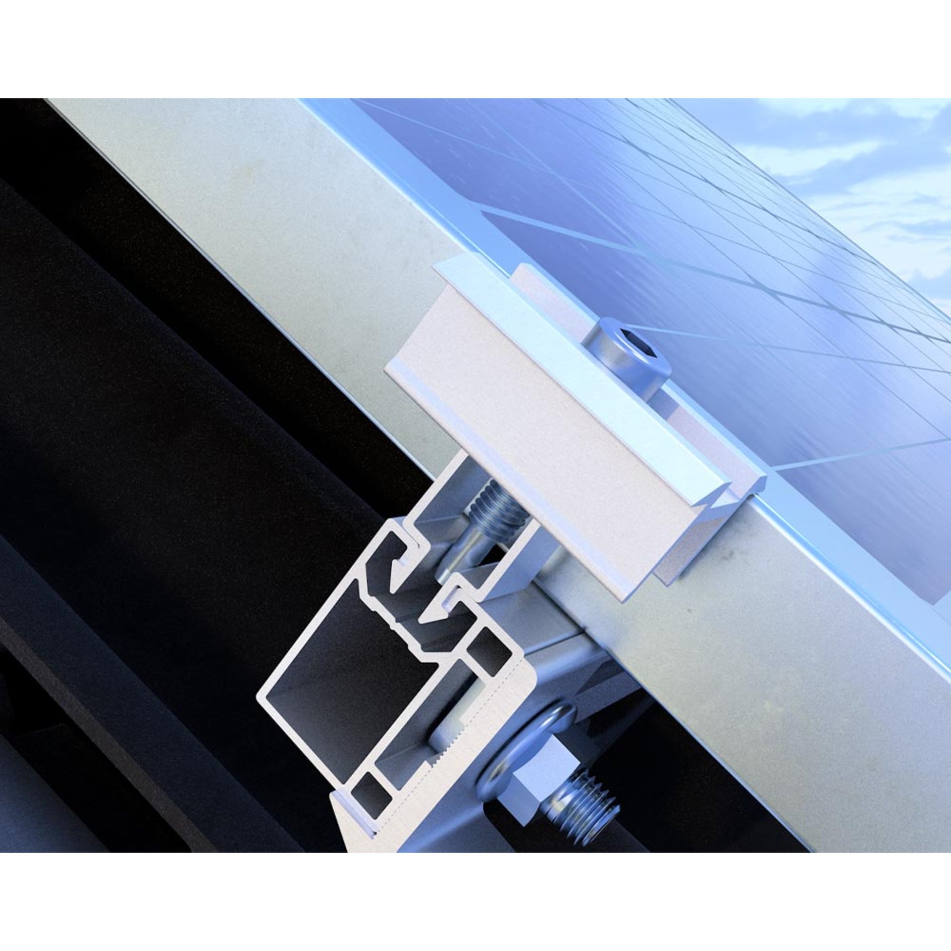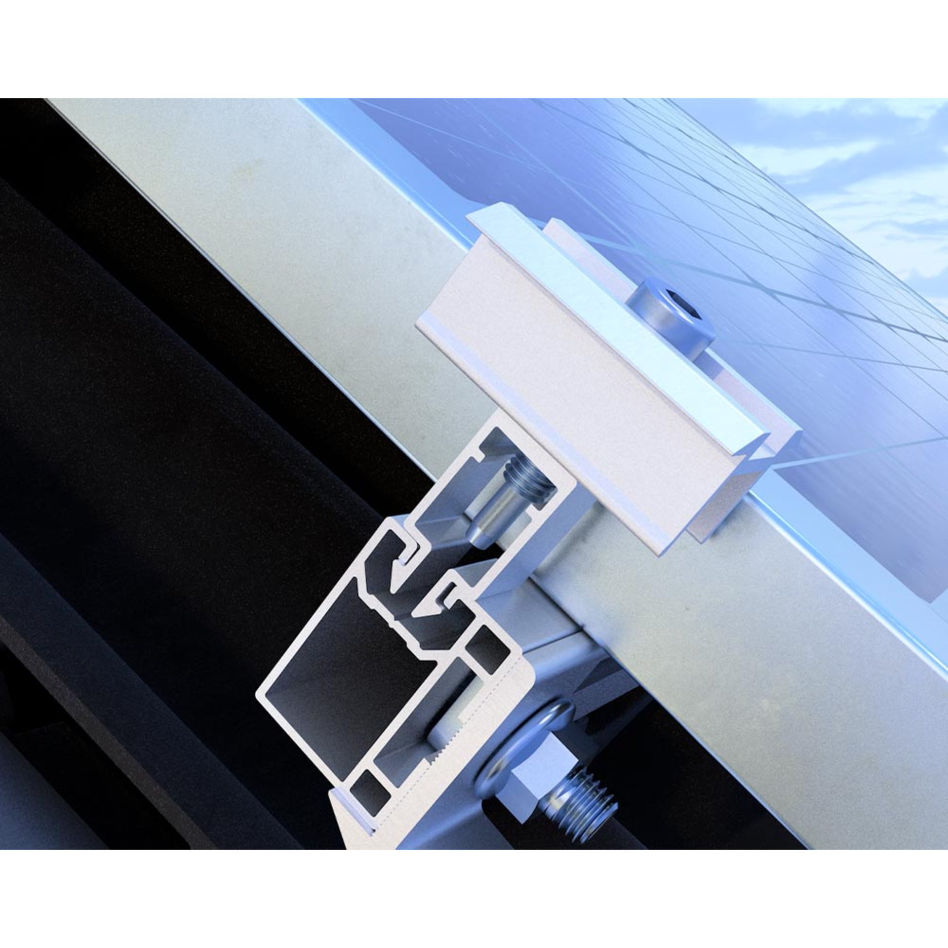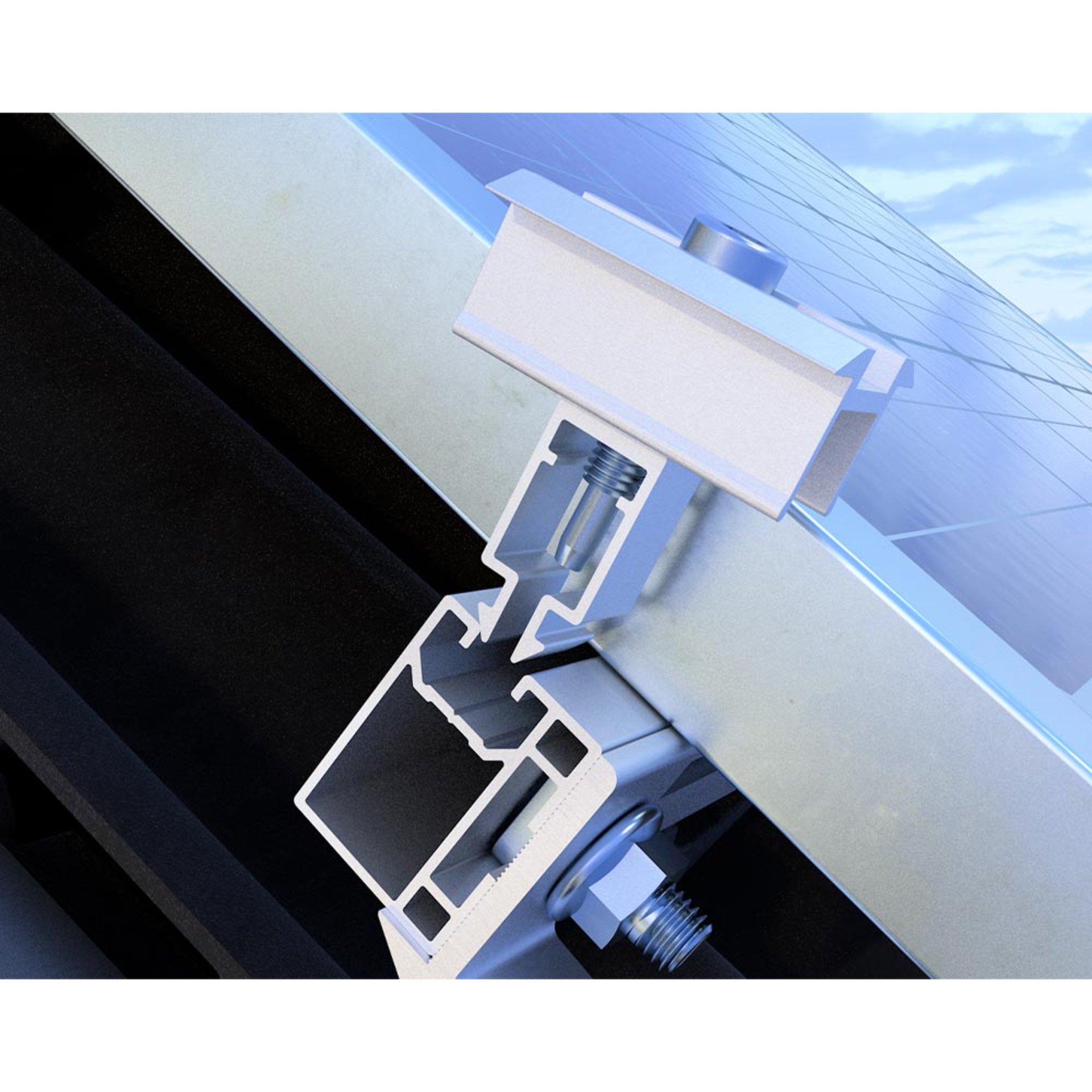 Die Modulklemme FASTFIX kann bei Solarmodulen mit Rahmenhöhen von 30–40 mm verwendet werden. Sie befestigt die Solarmodule mit einer einfachen Klickfunktion und ist sowohl für Trapezblech- als auch für Steildächer geeignet. Die Modulklemme FASTFIX ist mit dem Montageprofil Steildach und Steildach Slim kompatibel.