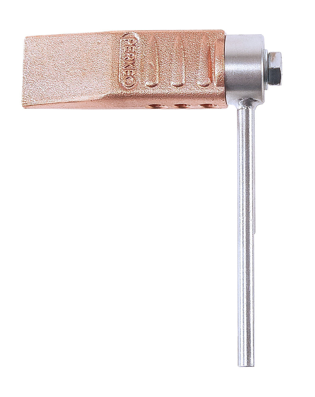 Perkeo LOCKDOWN24 Kupferstücke Maximale Wärmeübertragung Die drei Kernbohrungen an der Unterseite des Kupferstückes vergrößern die zu erwärmende Oberfläche. Dadurch kann sich der Flammenkern des Brenners besser verteilen und eine schnellere Erwärmung ermöglichen. Feste Positionierung des Lötkolbens Der rückseitig abgeflachte Edelstahlstift verhindert das Wegdrehen des Lötkolbens. Hohe thermische Leit- und Speicherfähigkeit durch kaltgewalztes Elektrolytkupfer als Grundmaterial Durch die optimale Wärmeübertragung des Elektrolytkupfers erhitzt sich der Lötkolben in weniger als 45 sek auf Arbeitstemperatur - zusätzlich gewährleistet das Grundmaterial maximale Wärmespeicherung und sorgt somit für einen minimierten Gasverbrauch während dem Löten.