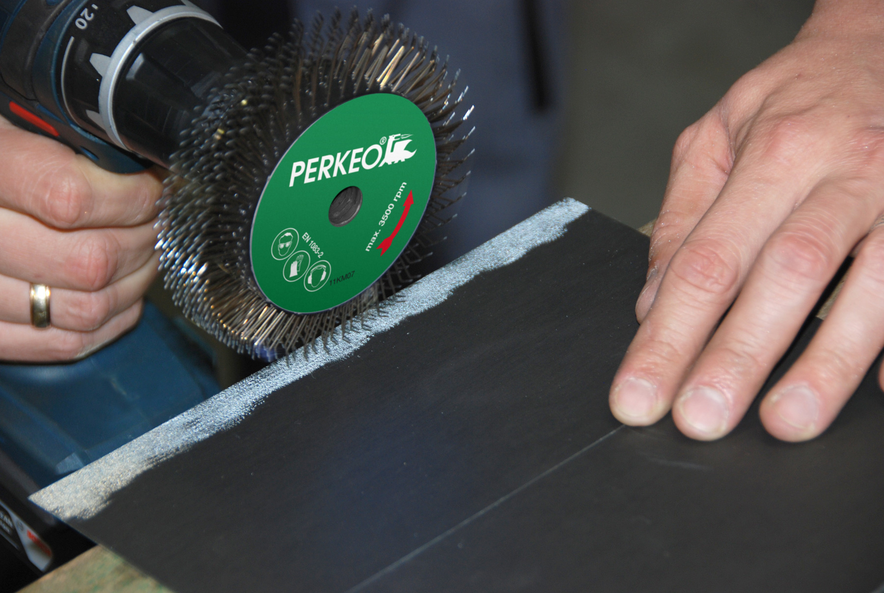 Perkeo TWISTER Stahl-Rundbürste Durchm. 100mm M14 mit Aufnahme